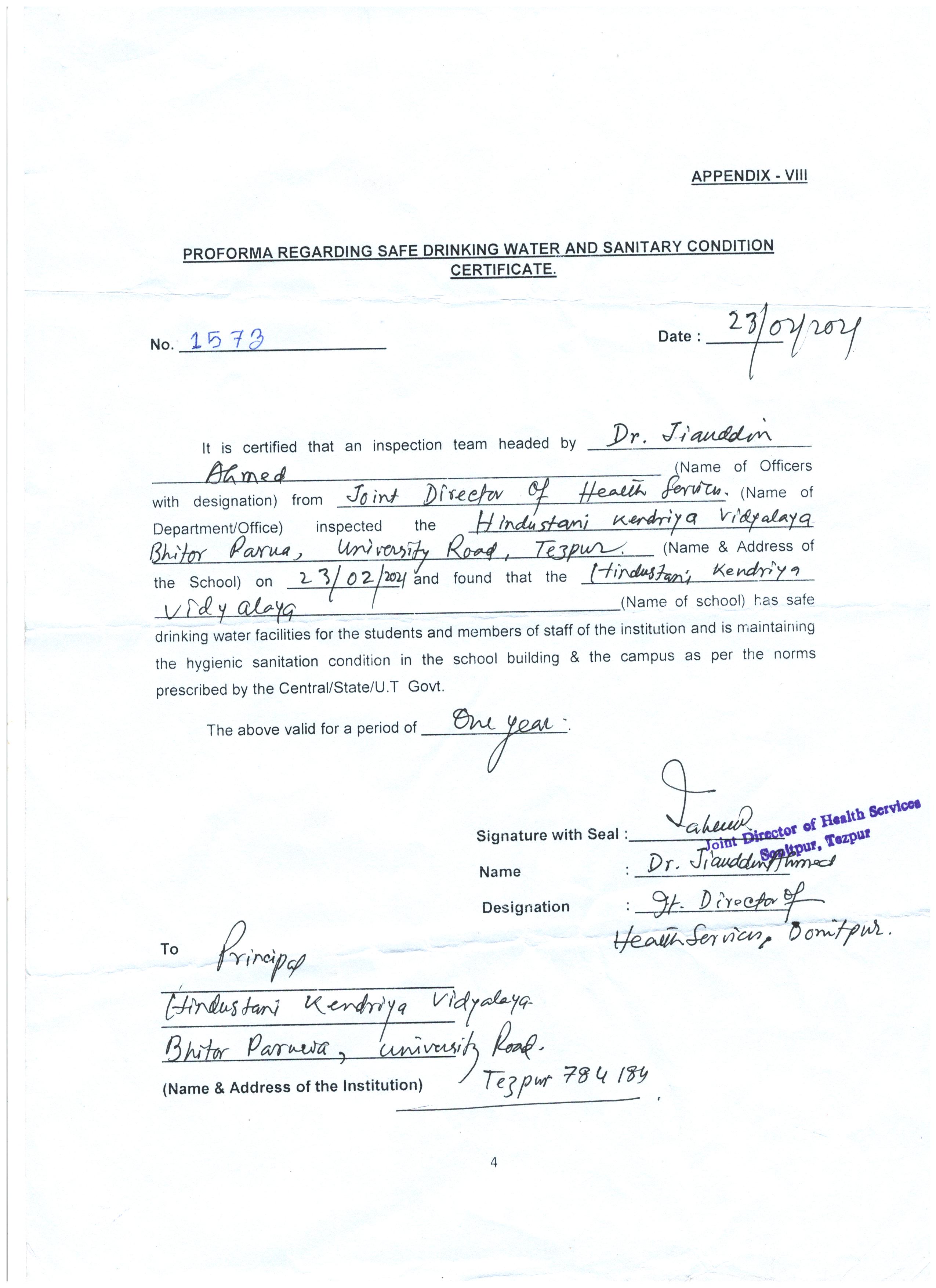 Water certificate