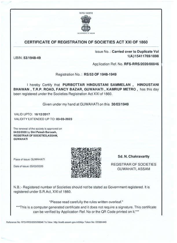 Society Reg. Certificate